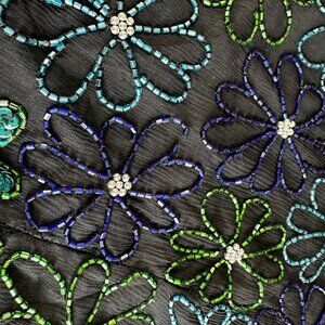 Laurence Kazar Black Beaded Silk Top Womens Small Vintage Sequin Party Blouse