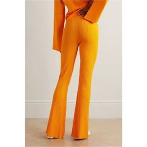 Elevate your wardrobe with these stunning Nanushka bright orange Lette split hem pants in size Large. Made by the high-end brand Nanushka, these pants are both stylish and comfortable. The vibrant orange color adds a pop of color to any outfit, perfect for making a statement. The split hem detail adds a trendy touch, making these pants a must-have for any fashion-forward individual. These pants are in used condition but still have plenty of life left in them, ready to be styled in various ways to suit your personal style. Pair them with a simple top and sneakers for a casual look or dress them up with heels and a blouse for a more polished ensemble. Don't miss out on adding these unique Nanushka pants to your collection!