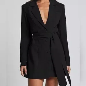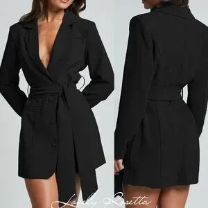 Black blazer dress with a belted waist. Perfect for any occasions.