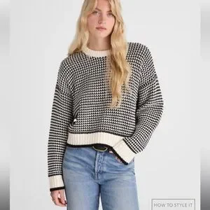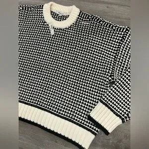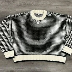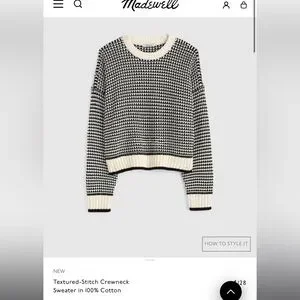 Madewell Textured-Stitch Crewneck Sweater 100% Cotton in Ivory And Black Stripe