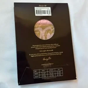 Elegant stockings with a pink and gold heart pattern. Designed by Honey Birdette.