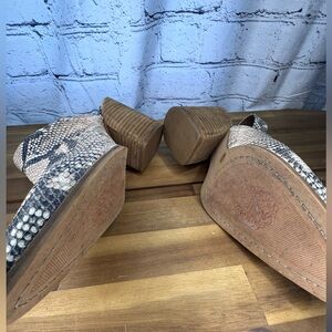 Step out in style with these Vince Camuto snake print wedge sandals. Featuring a chic tan and black design, these shoes are perfect for any occasion. Elevate your wardrobe with this fashionable and comfortable choice.