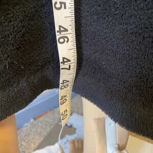 The product is a women's sleep robe by Maidenform, featuring a soft fleece material in a black animal print design. It has a cozy and comfortable zip front closure, making it perfect for lounging around the house or keeping warm on chilly nights. The vintage Y2K look adds a unique touch to this original piece, which is sure to provide both style and comfort for any woman. Made in China, this robe is a must-have for those looking for a stylish and cozy addition to their loungewear collection.