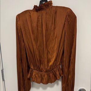 RamyBrook V Neck Beautiful Burnt Orange Top Sleeves are pleated with a ruffled neckline. Great to wear for dinners etc. Great condition ! Never worn !!!