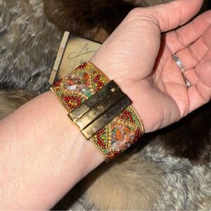 “Miss Kitty” Elegant beaded bracelet with easy magnetic closure handcrafted with genuine silver southwestern Concho detail is perfect for adding a touch of sophistication to any outfit. Length 8”. Comes with gift box. I have multiple available. See pics for different colors. This listing is for the burgundy with the square Western Saddle Rope Edge copper concho.