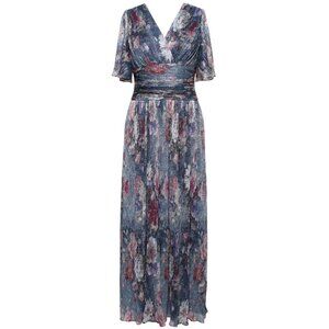 NWT Alex Evenings Shimmer Blue Floral Dress with Sleeves. Flowy stretch fabric with shimmer throughout. Blue multi floral. Surplice top, waistband, long flowy skirt, and elbow lenght sleeve. Mother of the bride. Mother of the groom. Wedding guest dress. Size chart in photos.