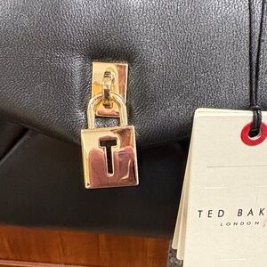 Chic black leather bag. Gold chain strap and lock detail. Perfect for any occasion. Brand new with tags. Someone must have taken strap in str 🤦🏽♀️. Small stretch on leather from str