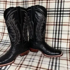 J.B Dillon Black Ostrich Leather Cowgirl Boots