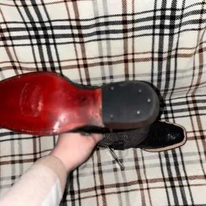 Elegant black Ostrich leather boots with detailed silver stitching. Ideal for stylish outings.