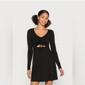 Hollister Knit Soft Drapey Cinched Cutout Long Sleeve A-Line Dress, Medium LONG