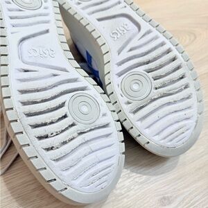 Chic Asics platform shoes in white with blue details. Ideal for everyday style.