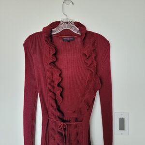 PENELOPE LEROY Chic Burgundy Ruffle Knit Cardigan