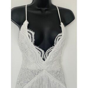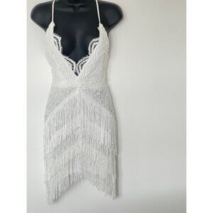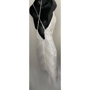 I saw it first party fun flirty mini dress fringing hi low size 4 white flapper