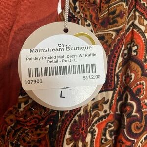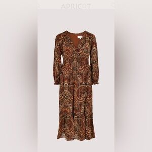 Apricot Paisley Midi Dress with Ruffles Size L