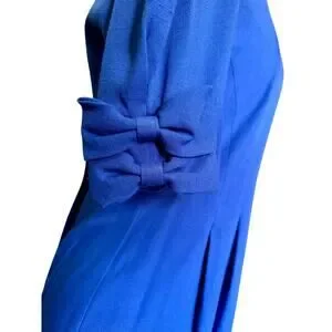 Vintage 70’s ILGWU Neiman Marcus Royal Blue Bow Sleeve Sheath Dress Small Medium