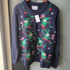 Christmas Knitted Sweater Navy Blue Funny Ugly Light Up Elves Candy Cane Large