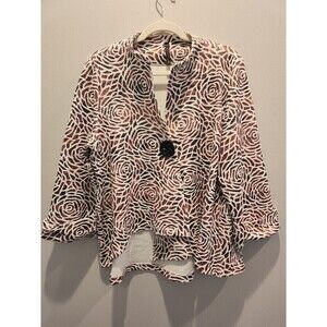 IC By Connie K Jacket Asymmetrical Hem 3/4 Cuffed Sleeve One Button Sz L Flora/ Abstract Rose Print see pics for approximate measurements no stains or signs of wear