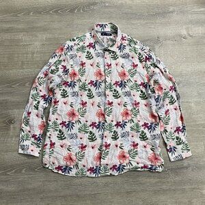 Cremieux Floral Linen Button Up Shirt Long Sleeve Casual XL 26” Pit To Pit