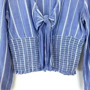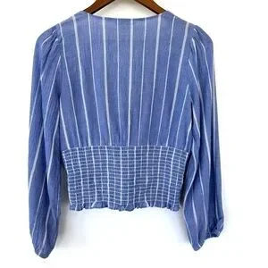 American Eagle top with deep v-neckline & tie, ruched waist, long sleeves.