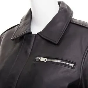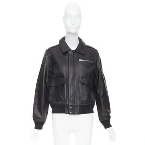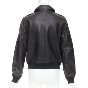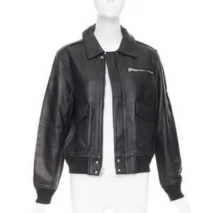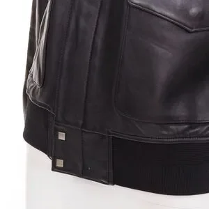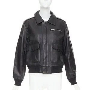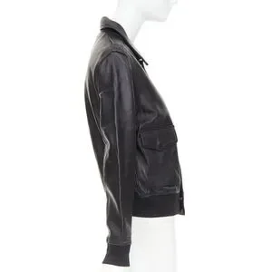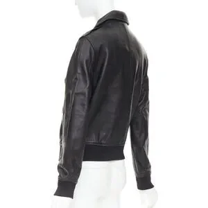 Delivery Duty Paid included – SAINT LAURENT 2020 black sheepskin leather pocketed flight jacket LReference: TGAS/F00396Brand: Saint LaurentDesigner: Anthony VaccarelloCollection: 2020Material: LeatherColor: Black, SilverPattern: SolidClosure: ZipLining: Black FabricExtra Details: Antique silver-color brass zippers on the front closure and branded studs on the front of the hem. Flap snap buttoned patch pockets. Black ribbed knit trim at hem and cuffs. Black satin twill lining.Made in: ItalyCONDITION:Condition: Good, this item was pre-owned and is in good condition. Please refer to image gallery for thorough condition check. There is a minor white stain at the center front hem. Scorch marks, possibly from other jackets, are imprinted on the leather surface, primarily at the front hem.Comes with: Style code present (Generic) SIZINGDesigner size: LSize reference: US8 / UK12 / IT44 / FR40 / M-LMEASUREMENTS: Shoulder to shoulder: 42cm / 16.4"Chest: 49.5cm / 19.3"Waist: 48.5cm / 18.9"Length: 56.5cm / 22"Sleeve length: 62.5cm / 24.4"JHROP is not affiliated with Saint Laurent. This Saint Laurent item is authentic. Measurments: strap length: 0 mm handle drop: 0 mm