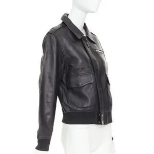 SAINT LAURENT 2020 black sheepskin leather pocketed flight jacket L