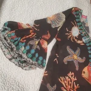 Discover elegance with this black maxi dress adorned with a captivating sea life design. Ideal for both casual and special occasions, it combines comfort with a touch of the ocean.