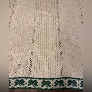 Shades of Aran Knit Merino Wool Christmas Blanket in Cream and Shamrock