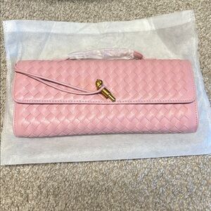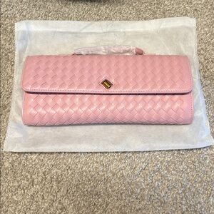 This elegant pink woven clutch is perfect for any occasion. Its stylish design and chic color make it a must-have accessory. Wear it in hand or attach the crossbody strap and wear on your shoulder OR cross body style! Brand new and never worn, ready to ship same business day, smoke free!