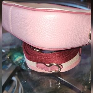 Elegant Coach crossbody bag with a pink heart motif on a white base. Features a stylish strap for versatile wear. Excellent Condition. Smoke and pet free home