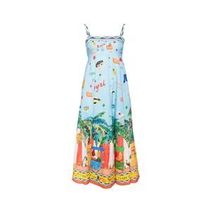 NEW ALEMAIS teamo supremo midi dress in blue multi