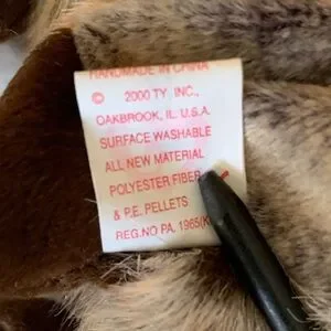 Made from Polyester Fiber and PE Pellets, bottom tag reads from 2000