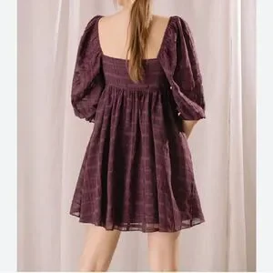 Storia Monochromatic Plaid Baby Doll Mini Dress size S Purple