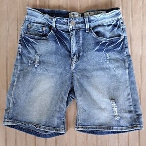 Indigo Rein Distressed Y2K Stretchy Comfy Denim Shorts Medium Wash