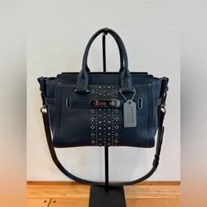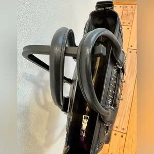 Excellent used condition. No missing studs, clean interior, includes metal hangtag, crossbody strap and dustbag. A small areas of rub on leather on back of bag under handle. Approximate dimensions 10.5”W x 7.5”H x 4.5”D