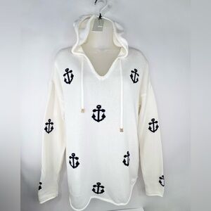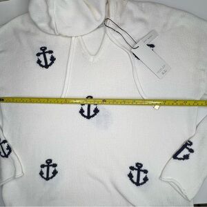NWT Rachel Zoe Hooded Anchor Sweater Cream Nautical Boat Beach Woman’s size M