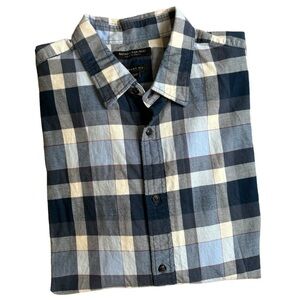 Banana Republic Luxe Flannel Grant Fit Navy/Blue/White w/ Red Stripe Men's XL