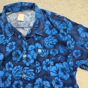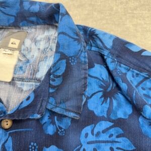Vintage Quiksilver Shirt Mens XL Blue Floral Hawaiian Rayon Button Up Surf Beach