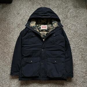 Rare 00s Levi’s Black Camo Insulated Down Puffer Jacket Parka Coat