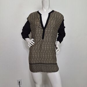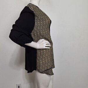 Urban Mangoz Black Tan Geometric Print 3/4 Sleeve Tunic Top Size Large