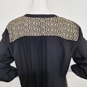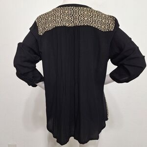 Urban Mangoz Black Tan Geometric Print 3/4 Sleeve Boho Retro Tunic Top Size L