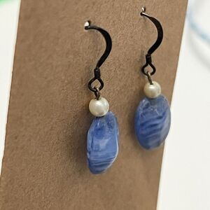 Sky Blue Stone Dangle Hook Earrings With Pearl Bead