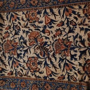 Beautiful antique table runner with intricate floral patterns. Features rich blue, brown, red and cream colors. Measures 72 x 18 in. In great used condition. This is almost like a batik, very unique! Check out my other listings to bundle and save!:)