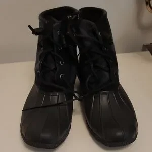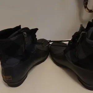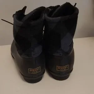 Cozy winter boots with plaid pattern. Durable and stylish. Perfect for cold weather.