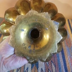 Vintage Large Solid Brass Etched Floral Scalloped Edge Pedestal Bowl