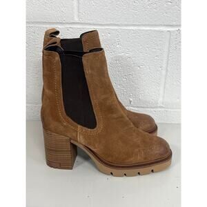 Vintage Foundry Co. Sz 8 Cognac Penelope Suede Leather Block Heel Chelsea Boots