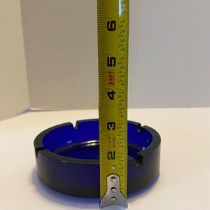 Vintage Deep Cobalt Blue Glass Round Ashtray Retro Very Clean