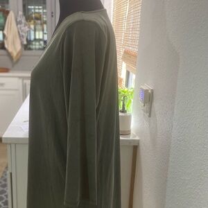 Women’s Blouse Mossy Green 1/4 Zip Front Longer In Back Size XL