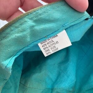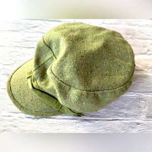 Stylish green tweed cap with colorful speckles. Perfect for a chic look.