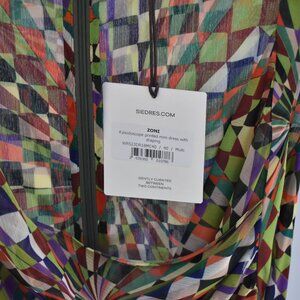 Zoni Kaleidoscope Print Mini Dress – Draped Bust & Flowy Skirt, Size 40