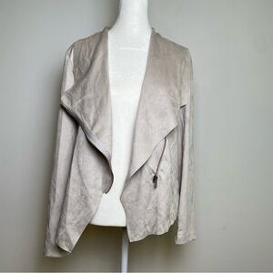 Philosophy neutral minimalist faux suede drapey zip moto jacket large collar NWT